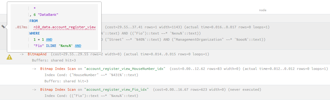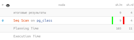 Сводная статистика узлов дает возможность анализировать планы из десятков тысяч строк в агрегированном виде с сортировкой по любому показателю: времени выполнения или чтения с диска, объему полученных из кэша данных или количеству отфильтрованных строк.