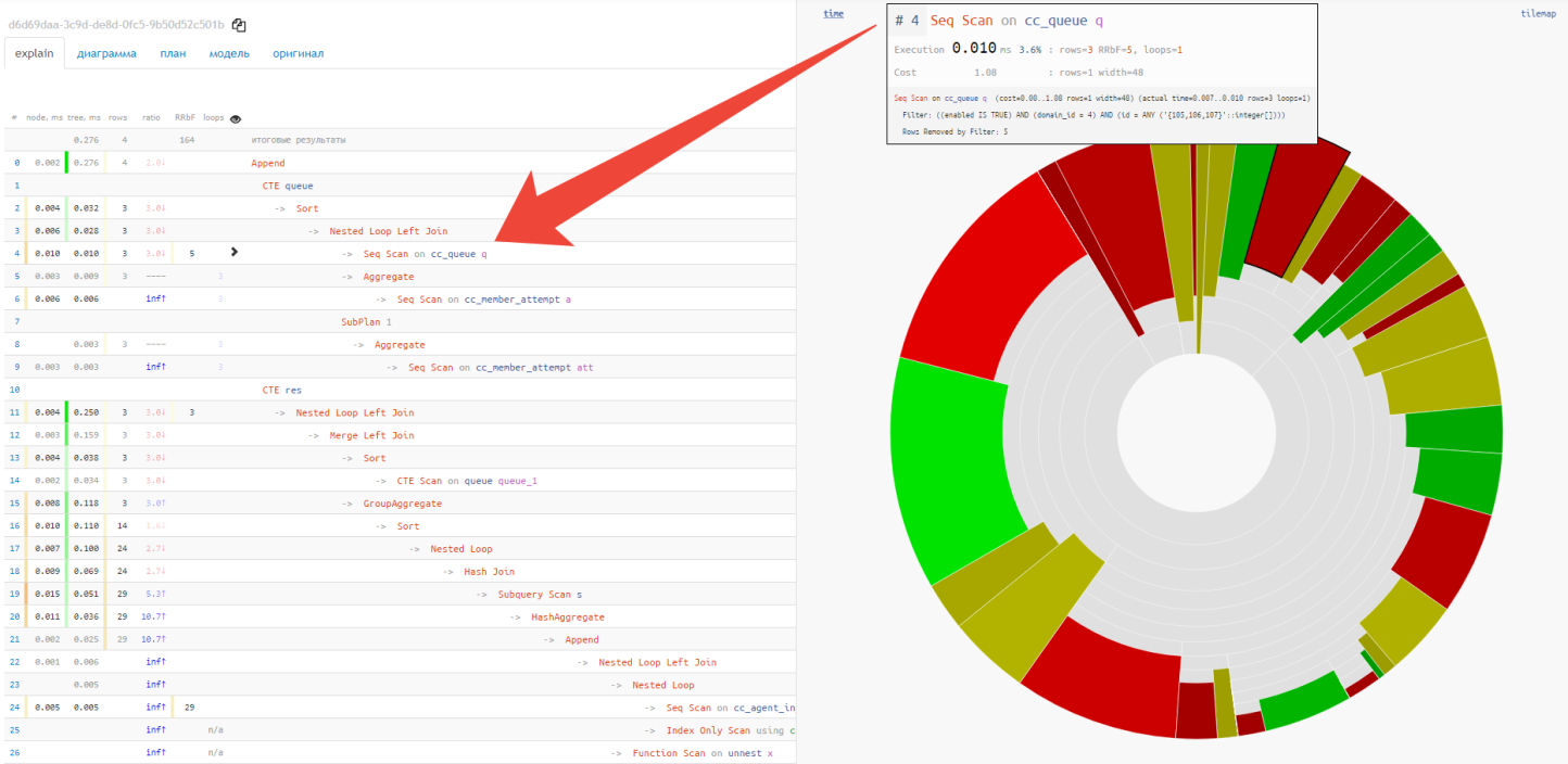 Нормализатор запросов в их единое визуальное представление с построчным профайлером позволяет с первого взгляда заметить, что именно пошло «не так».